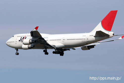 ↑ファイナルアプローチ中のJA8080。(2006/09撮影 成田空港)