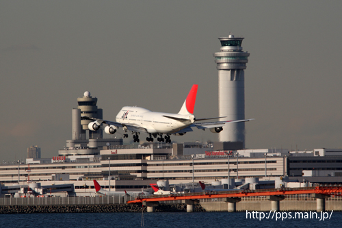 ↑C滑走路に着陸するJA8084。(2011/01 羽田空港)