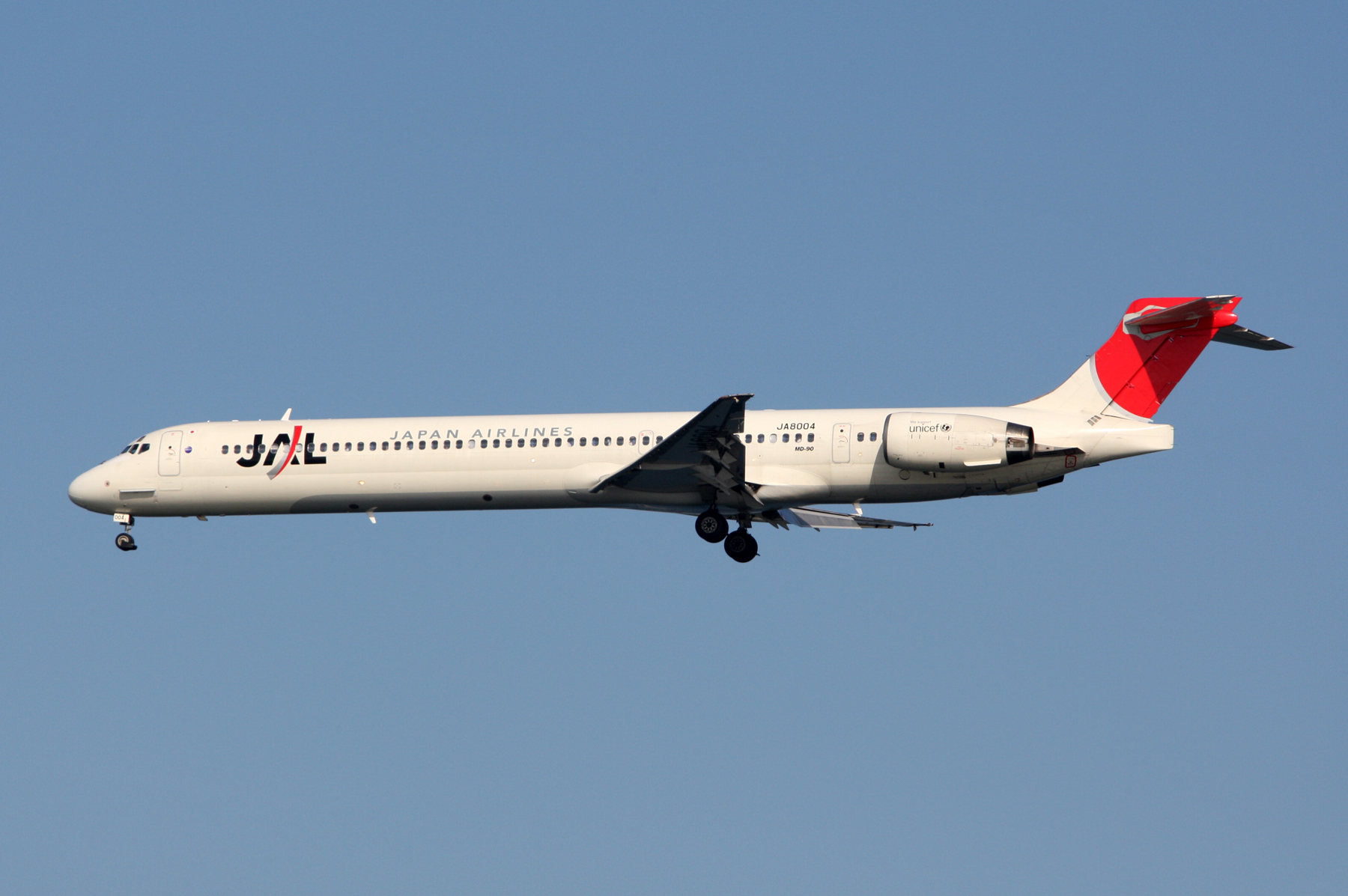 Japan Airlines - JAL McDonnell Douglas MD-90-30(JA8004) 製造/ライン番号:53359/2184 登録日:1997/06/02 定置場:羽田 撮影日:2011/11/01 撮影場所:東京国際空港(羽田空港)