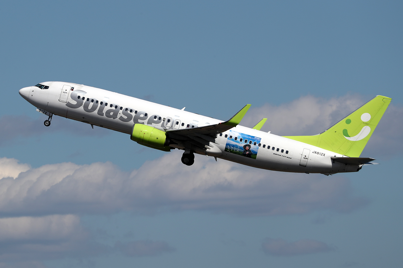 機体活用プロジェクト「空恋」の第33号となる特別塗装機。 南阿蘇をPR。公式の就航期間前に就航した。
